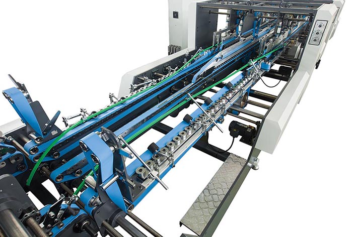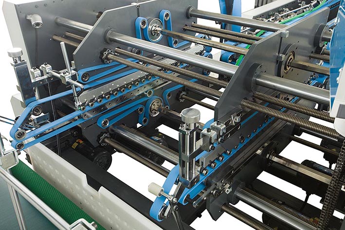 特有超長本折模塊,使紙板在此功能充分舒展后順勢(shì)展成型,左右輸送帶速度可單獨(dú)調(diào)節(jié),以校正箱杯確保直線輸送。