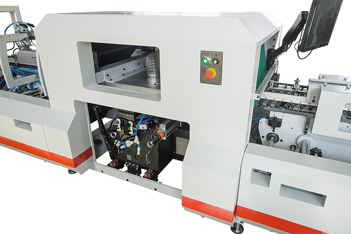送紙部由獨立電機調(diào)速驅(qū)動系統(tǒng)、配備震動與真空吸風(fēng)帶、保證紙板輸送精確、穩(wěn)定。