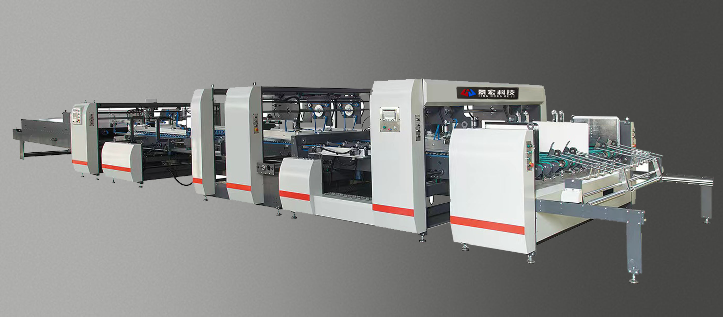 四組氣缸擋紙定位系統(tǒng),確保紙箱高底線精度.左右兩組氣動(dòng)側(cè)定位系統(tǒng),確保紙箱接口處精度兩片追送動(dòng)態(tài)拼接, PLC和機(jī)界面控制,確保拼接精度.