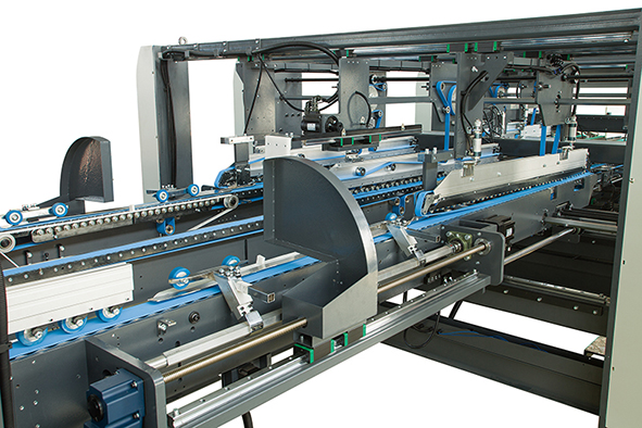 左右兩側(cè)配對(duì)伺服電機(jī),模擬手折動(dòng)態(tài)折疊,再配合后推伺服電機(jī),防止成型后紙張反彈過程中出現(xiàn)高低線,剪刀叉等情況,大大減少不良品。